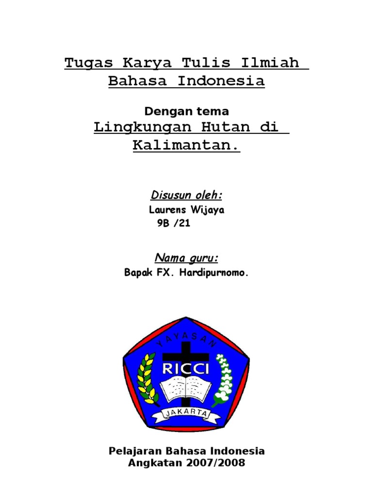 Karya Ilmiah Docx from img.pdfslide.tips Tujuan dibuatnya karya ilmiah penelitian ini yaitu untuk memenuhi tugas mata pelajaran bahasa indonesia agar dapat lebih memahami dan mengetahui mengenai pemanfaatan hasil tanaman pada komoditi tanaman pisang yang sudah ada di masyarakat. Judul juga mencerminkan dan konsistensi dengan ruang lingkup penelitian, tujuan penelitian, subjek penelitian dan metode. Mengidentifikasi informasi, tujuan, dan esensi karya ilmiah yang dibaca. Makna kata atau kelompok kata yang didasarkan atas penunjukan yang lugas pada sesuatu di luar bahasa Rpp ini merupakan bahan ajar yang diterapkan pada satker man 1 parigi. Contoh soal essay karya ilmiah paper writing websites. Rpp bahasa indonesia kelas xi karya ilmiah. Karya tulis ini diajukan dalam rangka memenuhi tugas mandiri mata pelajaran bahasa indonesia dan biologi di kelas xi semester ii tahun pelajaran 2013/2014.